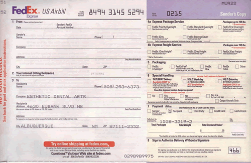 The Problem: Beginning in the mid 1970's FedEx required customers to utilize an Airbill. (Chuck Graham: FedEx called this the Airway bill, and the billing was called 'country club billing'. In addition to the invoice sent to the customer, a copy of the airway bill was stapled to the invoice.) Many other companies in the late 70's did not. They just billed from the customer's own label. Shippers generally put their own address label on the package in addition to the airbill, so in effect there were two address labels on the package. For shippers who prepared multiple shipments this became a nuisance. For shippers who shipped hundreds or thousands of packages a day, it started to be a real problem as FedEx expanded the business. Some customers did not want to fill out the Airbill. |