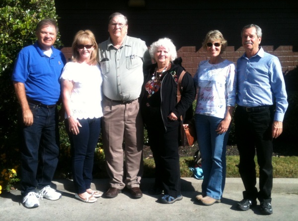 Lunch with friends: l-r: Jimmy Burk, Elizabeth Blaylock, Bob & Connie Higgins, Becky Gafford, Bob Baxter ; I've known many of these friends since 1980's. Bob & Connie were passing thru Memphis from Chicago to have lunch. Both Bobs & Becky worked in Memphis & Colorado Springs development. Everyone has been enjoying retirement! Interesting tidbit...Bob & Connie have went on over 60 cruises and are fixing to take a 180 day cruise around the world, this year |