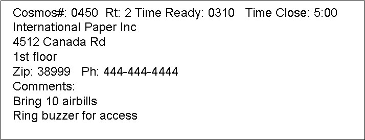 We already had a minimal station set up in Jim Bentley's office on the 17th floor on Clark Tower. Either Jim or the Memphis dispatcher had been taking printouts and just typing in the dispatches into the comm controller to send to the couriers, just for test.